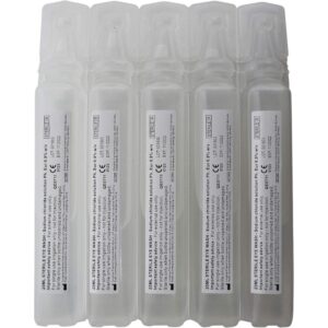 Ensure eye safety with 20 ml Eye Wash Pods, featuring a sterile 0.9% sodium chloride solution for effective rinsing and flushing of irritants.