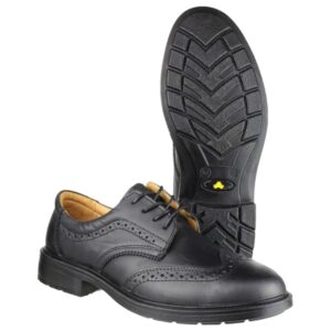 The Amblers FS44 Protective Brogue, meticulously crafted to combine safety and style in office and industrial settings. This smart black leather safety shoe is ideal for those in management and office environments, offering a polished appearance alongside robust protective features. The smooth leather upper includes a padded ankle collar, ensuring both stability and comfort throughout the workday.