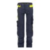 Although not EN ISO 20471 certified, the trousers incorporate segmented reflective details, reflective piping at the back of the knees, and fluorescent bartacks, improving visibility. Three-needle stitching and contrast stitching add both durability and style, while the concealed jeans button and zipper ensure a professional finish.