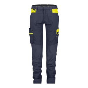Although not EN ISO 20471 certified, these trousers improve visibility with segmented reflective details, reflective piping at the back of the knees, and fluorescent bartacks. The 4-way stretch panels at the knees, back of the knees, and crotch provide unrestricted movement, making these trousers ideal for active work environments.