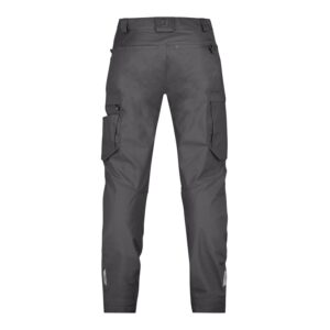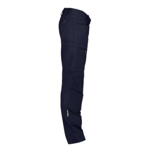 Key features include multiple practical storage options such as two front pockets, a zip-up safety pocket, two thigh pockets with concealed zip closures, and multifunctional tool pouches. Additional details like a pen holder, ruler pocket, mobile phone pocket, loop for an ID card holder, and reflective accents add convenience and safety. The trousers also feature an adjustable back elastic, a concealed jeans button and zipper, and an extendable hem (offering 5 cm extra length) for a customisable fit.