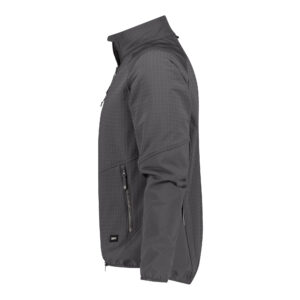 Key features include preformed sleeves and dropped seams for enhanced comfort during movement-intensive tasks, as well as a longer back for added coverage. The elastic bindings on the hips and sleeves provide a snug fit, and the soft chin guard with a 2-way zipper offers additional protection and flexibility. Practical storage is covered with two front pockets, a zip-up chest pocket, and reflective details ensure visibility in low-light conditions.
