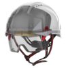 EVO® VISTAshield® Dualswitch™ helmet offers EN 397 & EN 12492 protection with retractable eyewear, A-rated impact resistance and adjustable chinstrap for optimal safety.
