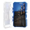 Compatible with a standard 10/13 mm chuck, the drill bits range in size from 1.5 mm to 10.0 mm, catering to various drilling needs. The set is conveniently supplied in a robust plastic case for secure storage and easy transportation. Manufactured to DIN338 and DIN1414-2 standards, this drill bit set is a reliable addition to any toolbox.