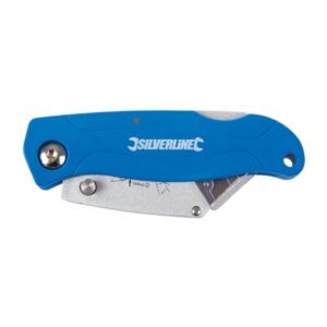 Lock-Back Folding Utility Knife features a secure locking action, quick-release button for easy blade changes, and ergonomic handle. Includes 1 x 0.6 mm blade and compatible with Silverline Utility Blades.