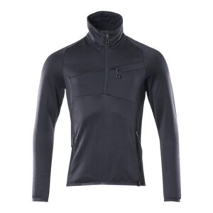 Dust-resistant fleece jumper with half zip, zipped pockets, high collar, elastic cuffs and hem, close fit, and reflective accents for added visibility.