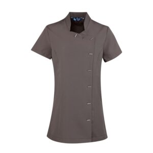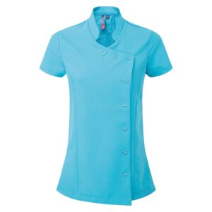 The Orchid Beauty & Spa Tunic is a stylish and versatile garment, available in eight vibrant colours to suit any aesthetic. Featuring an asymmetric design adorned with eight ‘bar’ buttons down the front, this tunic combines modern style with professional functionality.